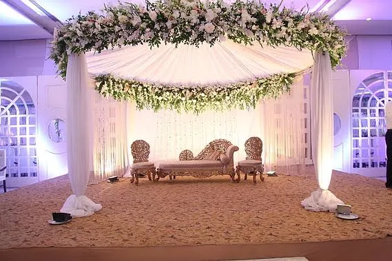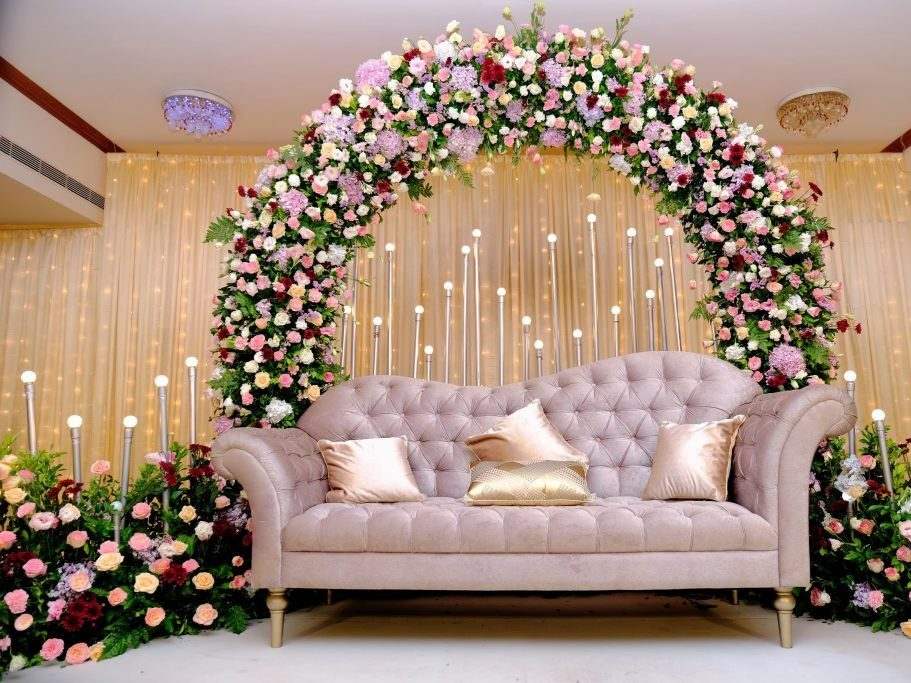 Flowers bring grace and freshness to every engagement. Our floral artists design centerpieces, stage arrangements, and romantic arches using the finest blooms — fresh or silk — to enhance your special day beautifully.